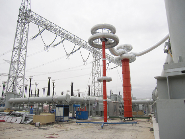 其中本次培訓的重點是YTC850--5200kVA-260kV變頻串聯諧振耐壓試驗裝置,該裝置主要針對220kV高壓套管、隔離開關的交流耐壓試驗, 220kV主變的交流耐壓試驗設計制造。具有較寬的適用范圍,是地、市、縣級高壓試驗部門及電力安裝、修試工程單位理想的耐壓設備。該裝置主要由變頻電源、勵磁變壓器、電抗器、電容分壓器組成,裝置具有過壓、過流、零位啟動、系統失諧(閃絡)等保護功能,過壓過流保護值可以根據用戶需要整定,試品閃絡時閃絡保護動作并能記下閃絡電壓值,以供試驗分析。整個裝置單件重量很輕,便于現場使用。裝置具有三種工作模式,方便用戶根據現場情況靈活選擇,提高試驗速度。工作模式為:全自動模式、手動模式、自動調諧手動升壓模式.