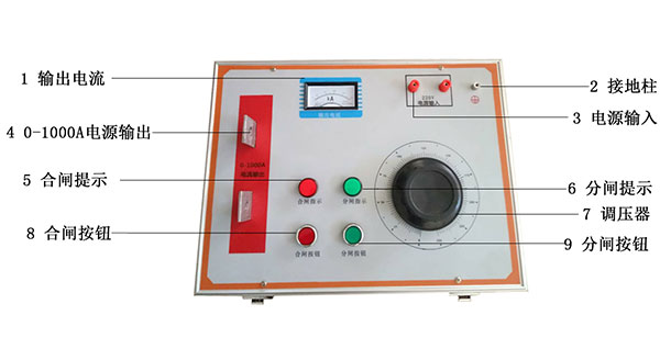 大電流發生器的面板結構和使用時應當注意的事項