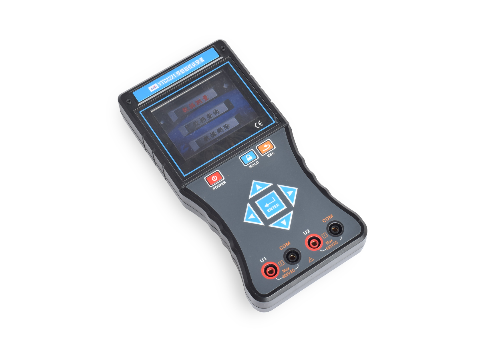 YTC2221數字雙鉗相位伏安表可以很方便地在現場測量U-U、I-I及U-I之間的相位,判別感性、容性電路及三相電壓的相序。